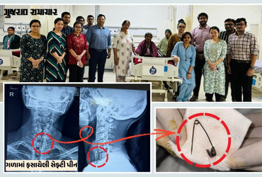 અમદાવાદઃ દાંત સાફ કરતી વખતે મહિલા સેફ્ટી પિન ગળી ગઈ, 20 દિવસ બાદ સાજા થઈ અમદાવાદ સિવિલ હોસ્પિટલે મહિલાના ગળામાં ફસાયેલી સેફ્ટી પિન કાઢવાનું ઓપરેશન કર્યું