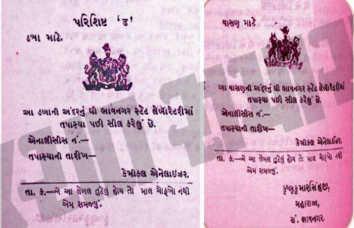 લોકોને શુદ્ધ ઘી મળી રહે તે માટે ભાવનગર રાજ્યએ શુદ્ધ ઘીનું પરીક્ષણ કરવા માટે લેબોરેટરી ઉભી કરી હતી અને ઘીનું પરીક્ષણ કર્યા બાદ તે બરાબર છે તેવું પ્રમાણપત્ર મેળવવું ફરજિયાત હતું અને તેને ઘીના ડબ્બા પર ચોંટાડી દેવામાં આવ્યું હતું.