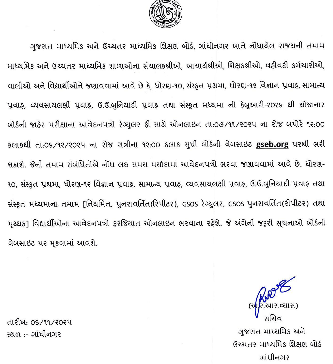 ધો.10-12ની બોર્ડ પરીક્ષાના ફોર્મ ભરવાની તારીખ જાહેર કરવામાં આવી છે