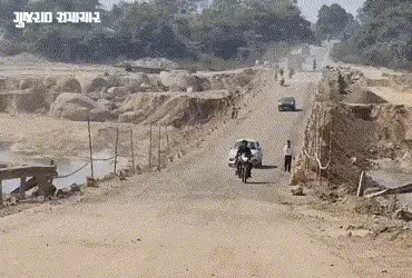 છોટા ઉદેપુર સમાચાર: બે વર્ષ પહેલા છોટાઉદેપુર જિલ્લાના પાવીજેતપુર નજીકથી પસાર થતી ભારાજ નદી પરનો પુલ તૂટી પડતાં રાહદારીઓ માટે રૂ. 6 કરોડના ખર્ચે નદીના પટમાં બે ડાયવર્ઝન બનાવવામાં આવ્યા હતા. જો કે, પાણીના વહેણને કારણે ડાયવર્ઝન ધોવાઈ જતાં ફરીથી નવું ડાયવર્ઝન બનાવીને રાહદારીઓ માટે ખુલ્લો મુકવામાં આવ્યો હતો. પરંતુ કોન્ટ્રાક્ટરે કામ કર્યું હોવાનો સ્થાનિકોએ આક્ષેપ કર્યો છે. સ્થાનિકોએ જણાવ્યું હતું કે ડાયવર્ઝનના કામમાં લોખંડ કે પાકા પેરાફિટને બદલે વાંસ નાખવામાં આવ્યા હોવાથી રાહદારીઓના જીવ જોખમમાં મુકાયા છે.