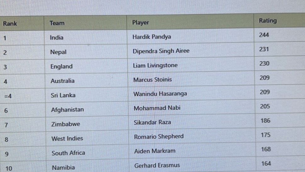 T20I ઓલરાઉન્ડર રેન્કિંગ