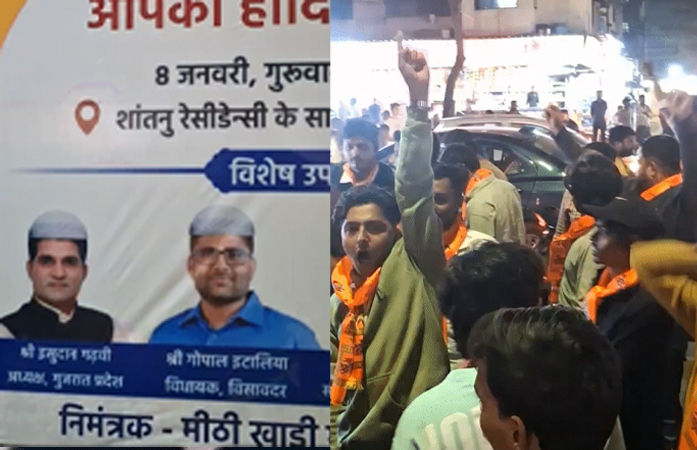સુરતમાં હાઈ એલર્ટ આમ આદમી પાર્ટી (AAP) દ્વારા આજે સુરતના ગોડાદરા વિસ્તારમાં જાહેર સભાનું આયોજન કરવામાં આવ્યું છે. જો કે આ બેઠક શરૂ થાય તે પહેલા જ ભારે હોબાળો અને વિરોધ જોવા મળી રહ્યો છે. મુસ્લિમ ટોપી પહેરેલા નેતાઓના પોસ્ટરોએ હિન્દુ વિસ્તારોમાં ગરમાવો લાવી દીધો છે અને વિશ્વ હિન્દુ પરિષદ (VHP)ના કાર્યકરોએ વિરોધ કર્યો છે.
