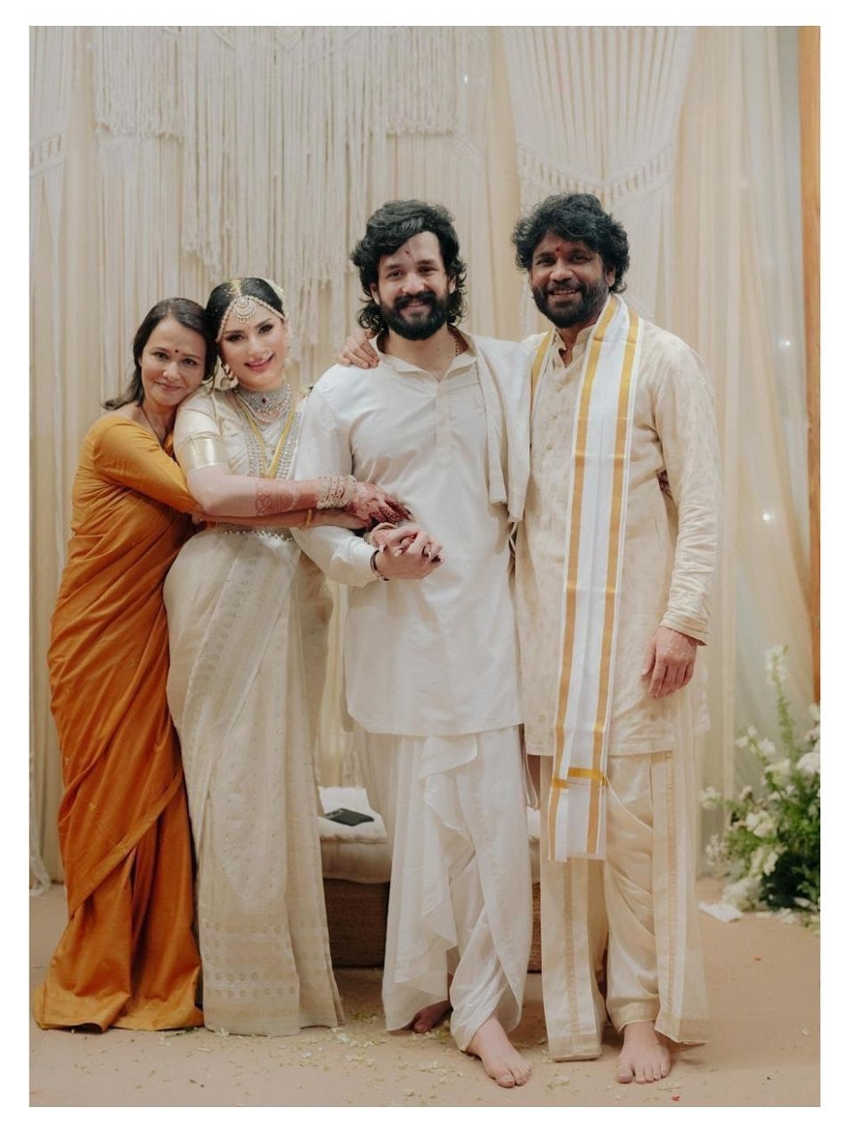 The Akkineni family celebrated recent weddings, with Naga Chaitanya marrying Sobhita Dhulipala in December 2024 after getting engaged in August the same year. Akhil Akkineni married Zainab Rawadji in June following their engagement in November 2024.