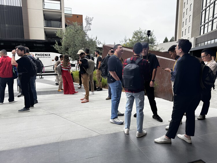 Tech media has started collecting outside Steve Jobs Theater. Looked here, our own Cyrus John. And Marx Brownley.