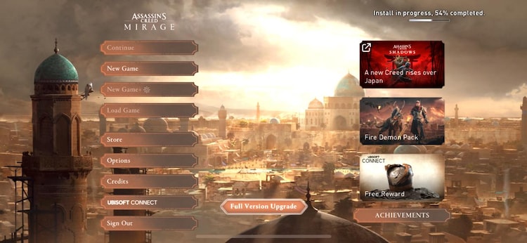 Downloading the game is a simple process. Just go to the app store and search for Assassin’s Creed Mirage. Then, click on get and wait for the download to finish. The size of the game is around 14 GB and we had no problem downloading it even on mobile data. Once the game is downloaded, click on the app and launch it.