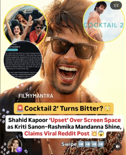 Hold tight to your tea cups because the latest buzz from Bollywood’s cocktail party is stirring up some spicy drama! Actors Shahid Kapoor, Rashmika Mandanna and Kriti Sanon are all set to rock together in the eagerly awaited film. cocktail 2. But wait, the real masala is not just on-screen, it’s off-screen too, the recent social media stir has everyone talking.
