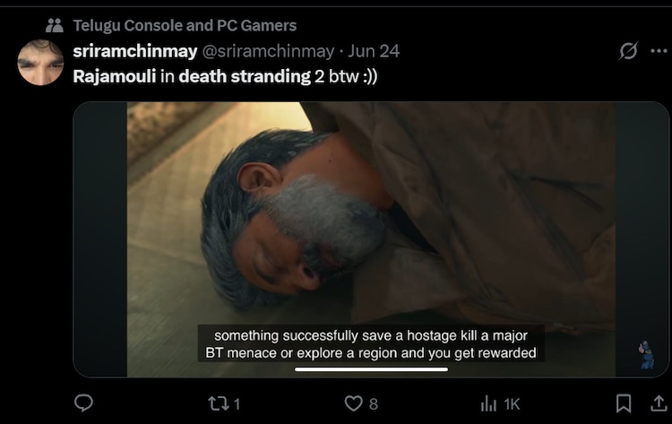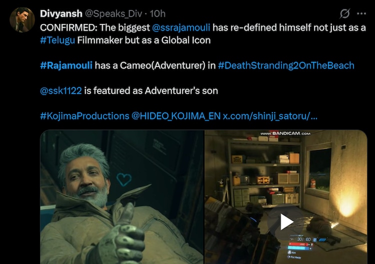 Rajamouli Cameo #Dathstranding 2 #Sssrajamouli @ssrajamouli @Hideo_kojima_en pic.twitter.com/bfmr4ylstp– Shinji Satoru (@shinji_satoru) 24 June, 2025