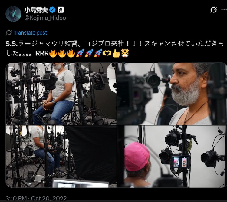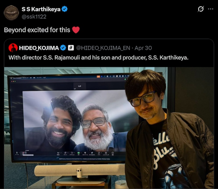 In April, Kojima held a virtual meeting with Rajamouli and Karthikeya. He shared a picture with both on X.