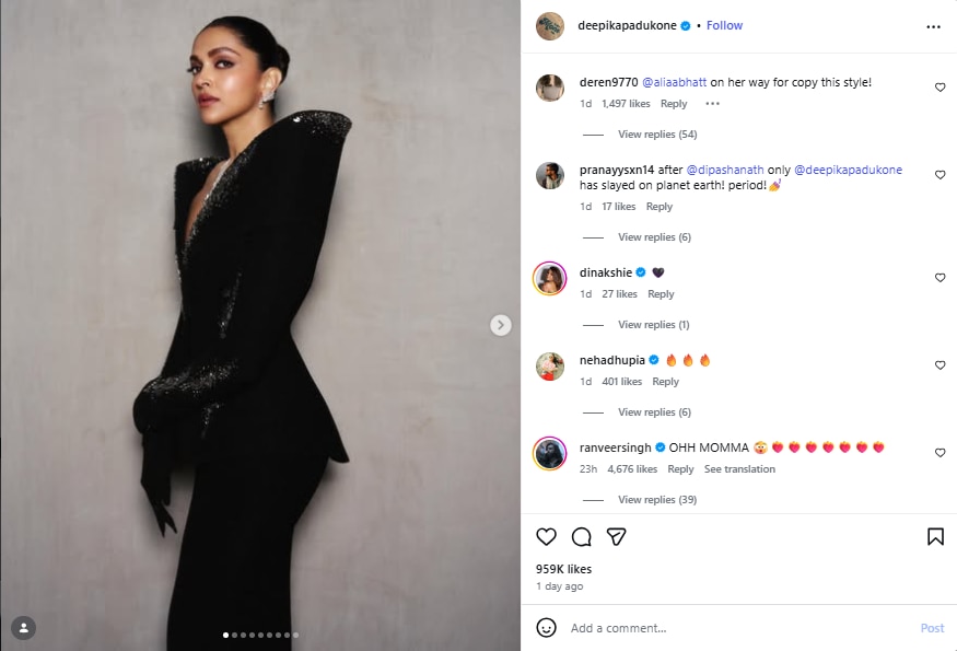 Deepika Padukone stuns in black as Ranveer Singh reacts with ‘Oh Maa’ (Photo: Instagram/Deepikapadukone)
