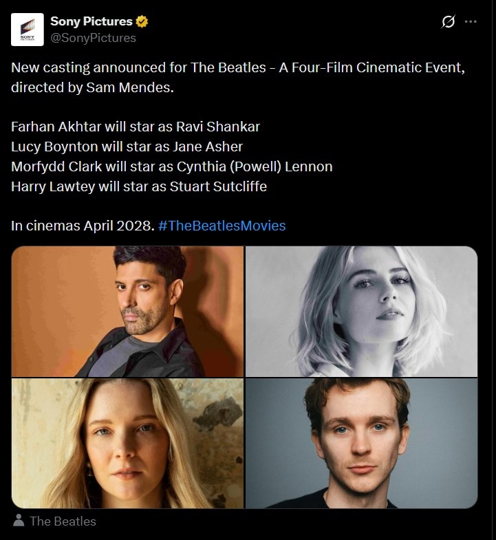 Akhtar will play the role of Ravi Shankar, whose association with George Harrison in the 1960s significantly influenced the musical direction of the band. Shankar introduced Harrison to Indian classical music and spirituality, shaping songs that incorporated sitar and Eastern musical elements, a collaboration that marked a defining cultural exchange in global music history.