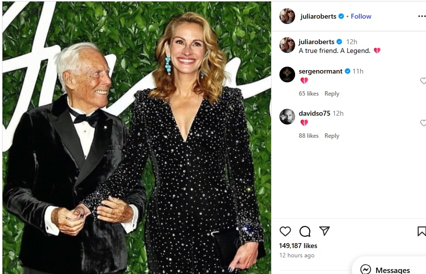 ‘Noting Hill’ actor Julia Roberts also shared a post on Instagram. He simply captioned it, “A true friend. A legend. (SIC).”