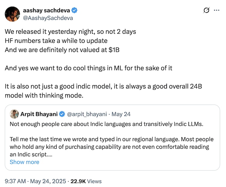 This led to a debate. Sarvam-M supporters, including Sachdeva, referred to the company, defended the model, highlighting their benchmark results and adaptation process. He even posted evidence of the model performance on social media.