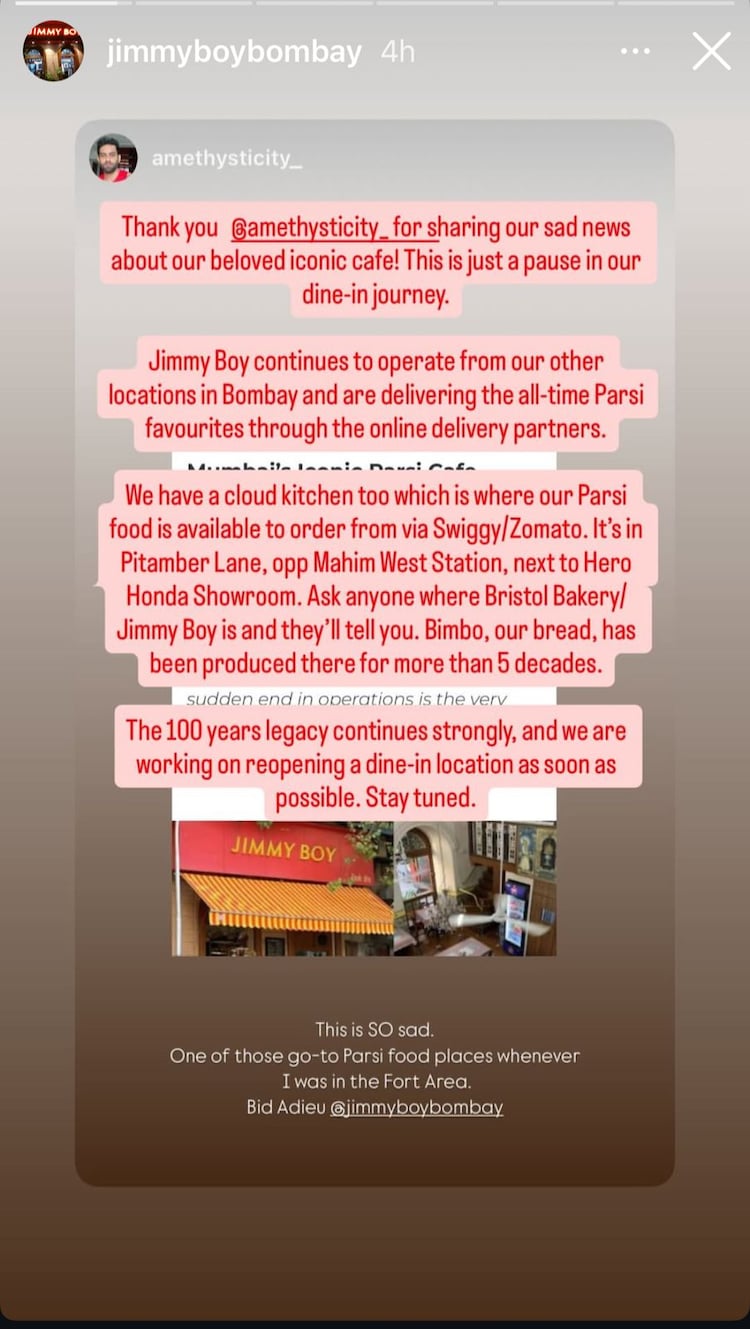 Is Mumbai’s prestigious Parsi Cafe Jimmy boy permanently closed?