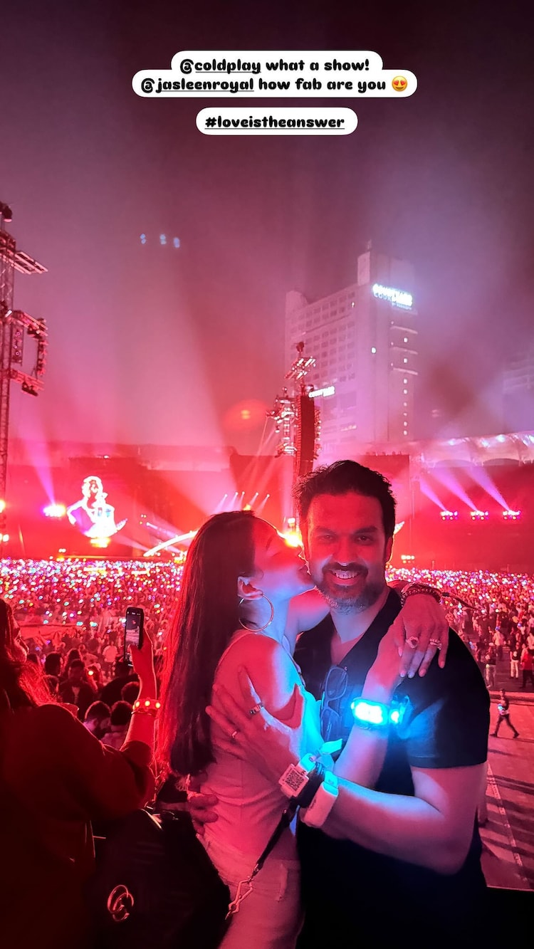 Expressing her happiness, she posted a photo of herself kissing her husband. She wrote, “@coldplay what a show! @jasleenroyal you are so amazing #loveistheanswer (sic).”
