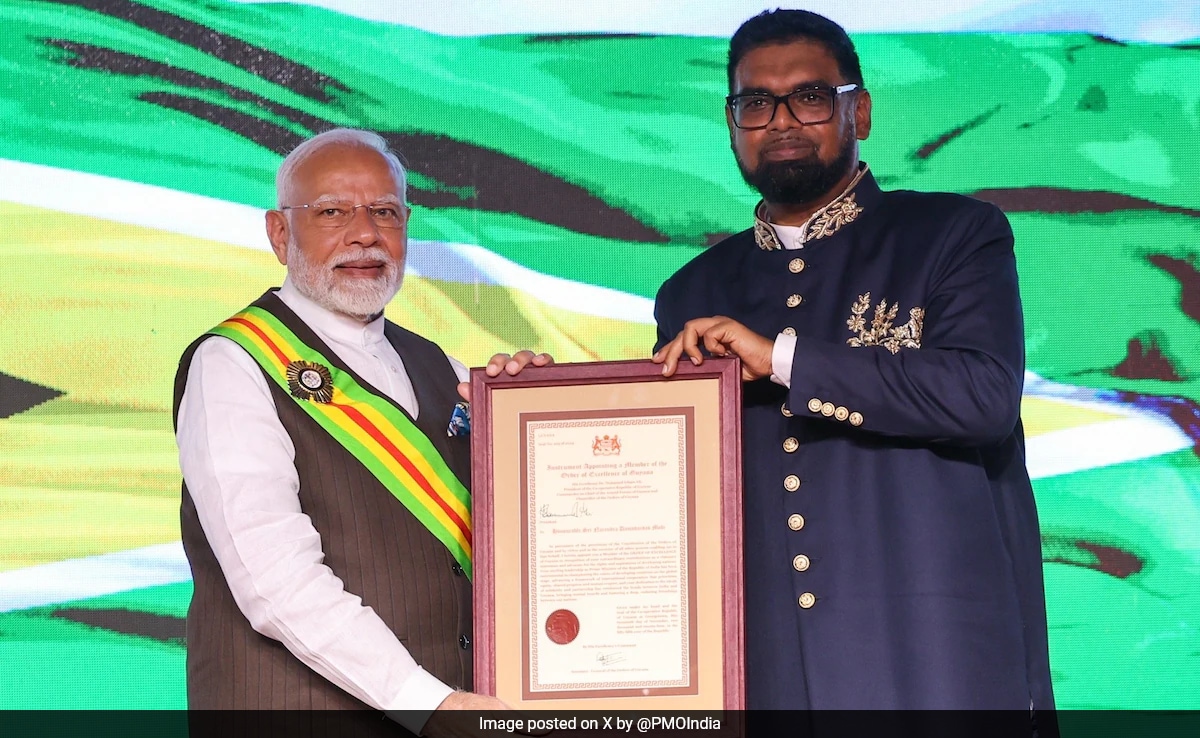 વડાપ્રધાન મોદી ગયાનાના સર્વોચ્ચ રાષ્ટ્રીય પુરસ્કારથી સન્માનિત થનારા ચોથા વિદેશી નેતા છે.