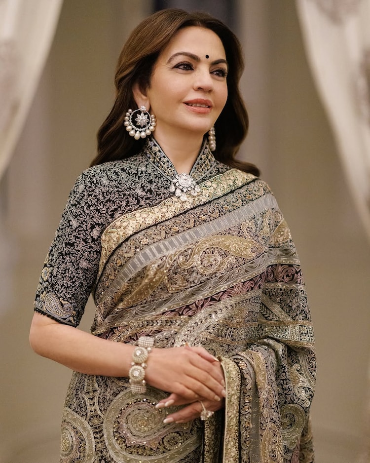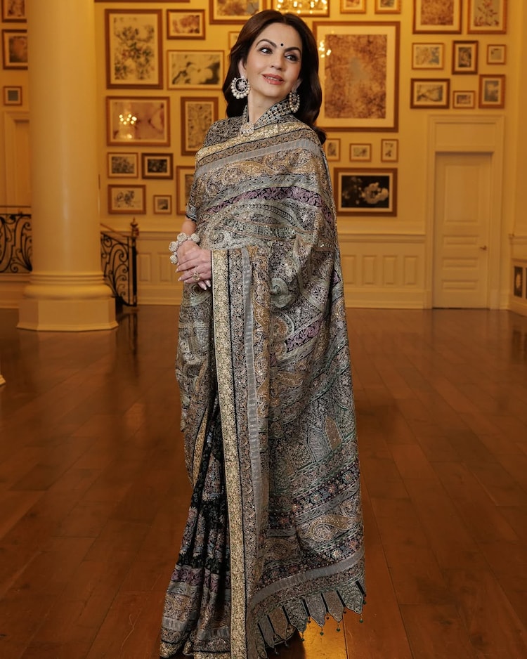 Nita Ambani did what she does best, donning her fashion best over the weekend when she attended a special dinner hosted in honor of current President Donald Trump. wrapped in exquisite clothes jamewar She effortlessly embraced her traditional roots in a (Kashmiri fabric) saree by renowned designer Tarun Tahiliani.