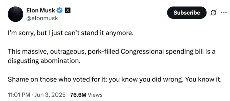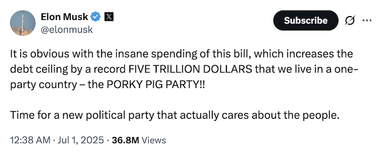 Elon Musk’s reaction to the bill was not only about EV incentive. He threatened to create a new political movement when the bill was passed. “If this crazy expense bill passes, then the part of America will become the next day,” he posted.