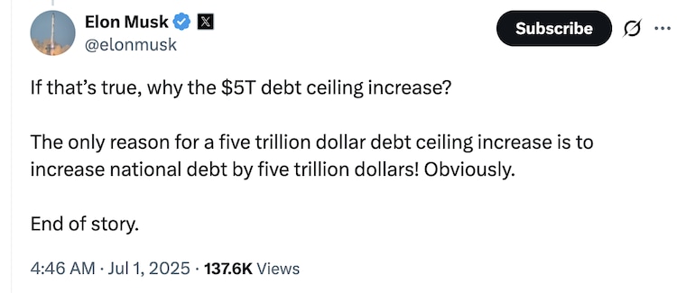 Musk argues that Bill increased the national loan by $ 5 trillion in ten years. Trump, however, says that it is the greatest expense in the history of America, and will not affect social security, medicare or medicade.
