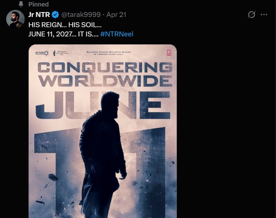 Jr NTR shared a poster on Instagram and announced the new release date, writing, “His Reign His Soil is June 11, 2027. #NTRNeel.” He also said that the first look of the film will be released on May 20. Earlier, the official social media handle of the film had announced the release date as June 26, 2026 with the message: “26th June 2026 The most spectacular story ever to burst from the soil of Indian cinema. A special sneak peek for the birthday of the Man of Masses @tarak9999. #NTRNeel.”