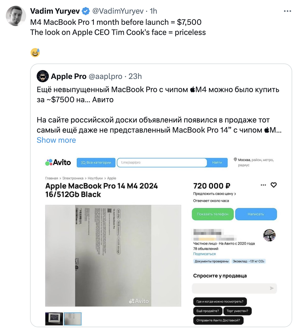 But what’s “crazy” about these leaks is not the information contained in the leaks, but the leaks themselves. It is unusual for an Apple device to be revealed before its official launch. The current situation appears like a major leak or breach at an Apple warehouse. According to leaker ShrimpApplePro, apparently 200 units of the new MacBook Pro with the M4 chip are already available for purchase. The source of this information or where the product is coming from cannot be confirmed, but this entire situation is becoming more complicated.