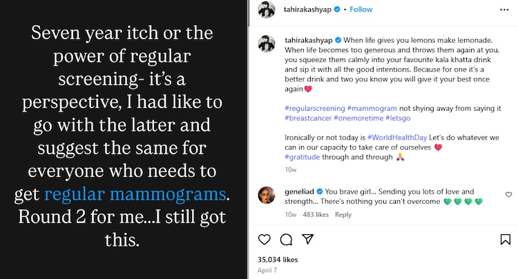 In a post on Instagram, Tahira wrote, “When life makes you lemon. When life becomes very generous and throws them again, you squeeze them in your favorite black sour drink peacefully and sips it with all good intentions. Because it is a better drink and two you know that you will give it again.”