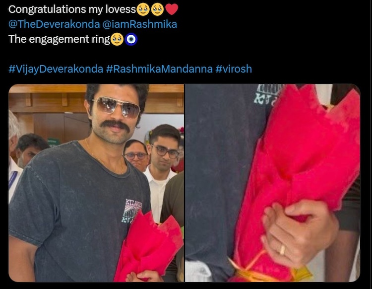 Pictures of Vijay Devarakonda, holding the bouquet, went viral on social media. The fans quickly saw their ring, which many people are saying their engagement ring.